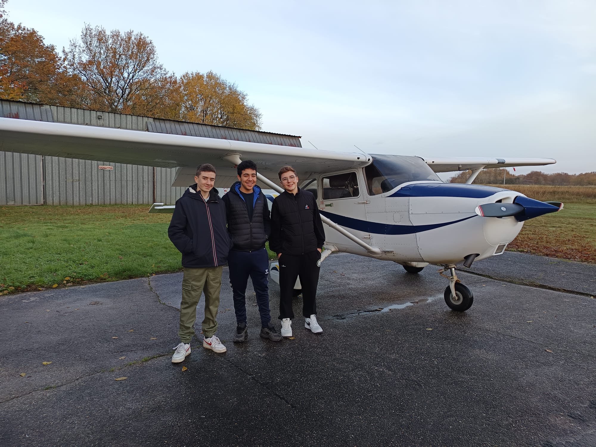 9 élèves volontaires de 2nde Aéro se sont retrouvés le samedi 6 décembre 2025 de 9h à 12h à l'aéroclub d'Yvrac pour des vols d'initiation dans un CESSNA 172 par groupe de 3